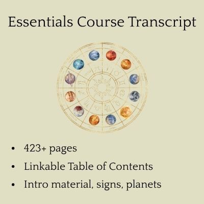 The Essentials of EA: Philosophy, 12 signs, houses, basic astronomy all the planets. Includes workbook and 400+ page transcription of entire course.