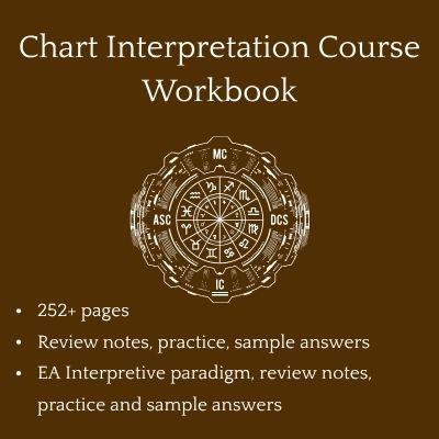 Core EA Interpretive practice focusing on aspects, phases, lunar nodes and aspects to Pluto and the nodes. Entire section on transits, progressions and lifecycles. Workbooks included
